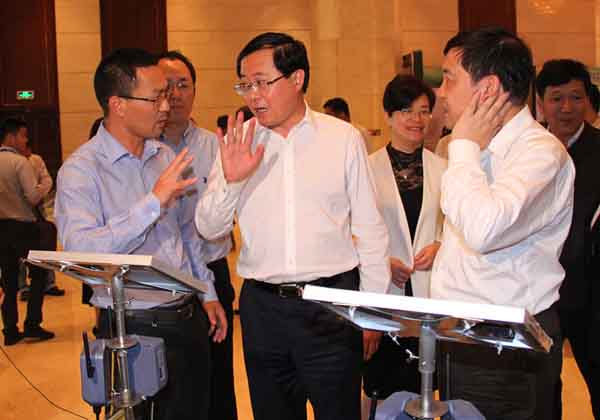 在浙江托普云農科技有限公司(以下簡稱“托普云農”)展區,公司常務副總朱旭華向車省長詳細介紹了托普云農農林“四情”監測預警系統、托普設施農業監控系統、托普水肥一體化監控系統的應用情況,表示公司將繼續在標準制定、高端技術研發和示范應用三個方面全面發力致力于用物聯網、云計算與移動互聯等新技術來推動農業現代化建設。