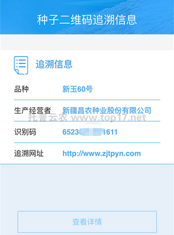 托普農作物種子二維碼標簽追溯系統web界面及手機APP: