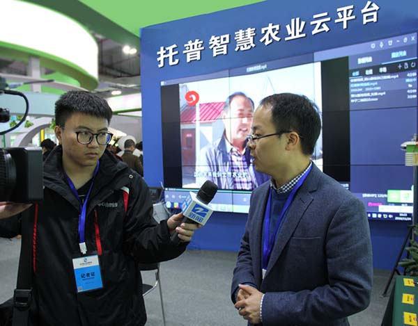 這一番“互聯(lián)網(wǎng)+農(nóng)業(yè)”的介紹也獲得了浙江衛(wèi)視的關(guān)注。記者來到托普云農(nóng)展位,公司副總朱旭華向記者介紹了公司獲得的科研成就及展出的智能化軟硬件系統(tǒng)。主要有:托普云農(nóng)農(nóng)業(yè)“四情”監(jiān)控系統(tǒng)、設(shè)施農(nóng)業(yè)監(jiān)控系統(tǒng)、水肥一體化監(jiān)控系統(tǒng)、智慧農(nóng)業(yè)云平臺等農(nóng)業(yè)物聯(lián)網(wǎng)系統(tǒng)、平臺及土壤墑情監(jiān)控系統(tǒng)硬件、農(nóng)藥殘留速測儀、相關(guān)智能硬件設(shè)備(如遠程傳輸智能蟲情測報燈、溫室通、大田六合一無線傳感器、植物本體傳感器)。