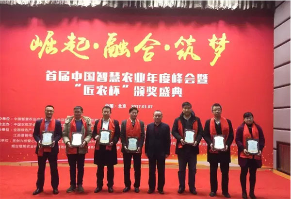 1月7日,首屆中國智慧農業年度峰會暨“匠農杯”頒獎盛典將在農業最高學府中國農業大學隆重開幕。峰會由中國智慧農業產業聯盟、北京物聯網智能技術應用協會主辦,以“崛起·融合·筑夢”為主題。共有55人、40個企業因為2016年在智慧農業領域的突出貢獻而獲獎,同時,也有40個項目獲獎。浙江托普云農科技股份有限公司(以下簡稱“托普云農”)獲得兩項個人獎項,并位列“2016十佳農業物聯網企業”第一位。