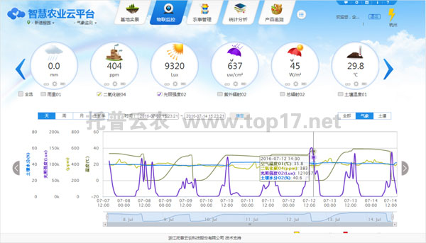 托普云農傳感器在智慧農業云平臺上的數據監測顯示