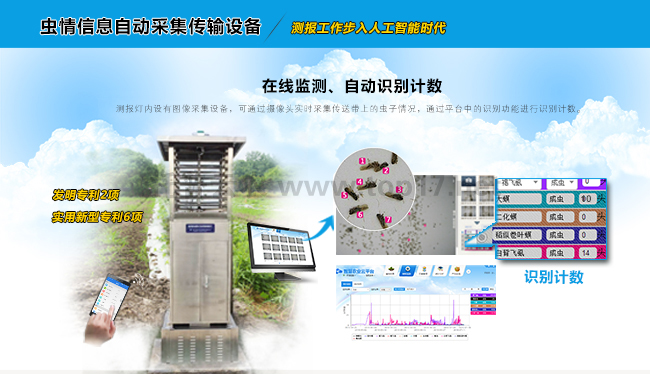 智慧型蟲情測報燈是新一代圖像識別式蟲情測報工具,可全天候工作。在無人監管的情況下,系統運用物聯網、互聯網、人工智能、大數據等技術自動采集、傳輸、分析、存儲和展示蟲情數據,并提供自動化和智能化的分析和管理決策數據。通過電腦、手機等終端設備,便可對作物病蟲害實行遠程實時監測、在線識別、自動計數,是植保人員的“千里眼”和“聽診器”。智慧型蟲情測報燈亦是植物保護提升工程的重要智能裝備,它與農作物病蟲害實時監控物聯網設備、蟲情信息自動采集傳輸設備、農田小氣候自動采集傳輸設備、農作物病菌孢子自動捕捉培養系統等設備配套使用,是農作物病蟲疫情監測點建設中必不可少的智能測報工具。