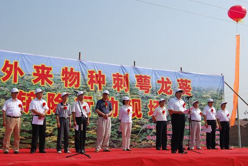 2009年7月6日,農(nóng)業(yè)部科技教育司、河北省農(nóng)業(yè)廳和中國(guó)農(nóng)學(xué)會(huì)聯(lián)合在河北省召開(kāi)外來(lái)入侵生物刺萼龍葵集中滅除行動(dòng)現(xiàn)場(chǎng)會(huì),動(dòng)員社會(huì)各界力量,開(kāi)展外來(lái)入侵生物集中滅除行動(dòng),提高廣大干部群眾的知毒、識(shí)毒、防毒和滅毒能力。農(nóng)業(yè)部科教司王衍亮巡視員出席鏟除現(xiàn)場(chǎng)會(huì),河北省當(dāng)?shù)馗刹咳罕?00多人參加了現(xiàn)場(chǎng)鏟除,中央電視臺(tái)、中央人民廣播電臺(tái)等新聞媒體也參加了鏟除現(xiàn)場(chǎng)會(huì)。
