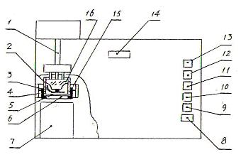 1.7 按動和面鍵(12)和洗滌鍵(11),托架(4)帶動洗滌杯(2)下降,洗滌鉤轉(zhuǎn)動,開始和面顯示器(14)后二位顯示和面的時間(S)。當和面到達所設(shè)置的時間(20S)后,托架帶動洗滌杯上升,水泵向洗滌杯內(nèi)供水,開始洗滌面團,顯示器前一位顯示洗滌面團的時間(min),當洗滌到達所設(shè)置的時間(5min)后,儀器停止工作,完成洗滌。和面鍵(12)和洗滌鍵(12)也可分開使用,如和面結(jié)束后再按洗滌鍵,儀器開始洗滌。