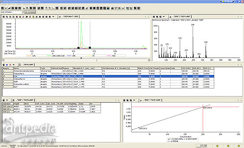 盡管自動化在增加數(shù)據(jù)評價通量方面極其重要,但軟件的布局和設(shè)計也同樣重要。用戶必須能夠在軟件的一個區(qū)域內(nèi)無縫流暢地工作,而不需要為完成單個任務(wù)在面板/窗口之間來回移動。將不同信息以一種有助于增加速度、便捷性和靈活性的方式列出也非常重要。當查看樣品或標樣時使信息列出的能力、如何列出信息的靈活性以及信息在屏幕上顯示的位置,都會增加操作者的工作效率。圖4的屏幕截圖中,展示了校正多個分析物的增強功能。從這個單一的界面中,除了出現(xiàn)的標樣外,分析者還能看到校正中分析物的列表,以及標樣中每一個待測物的色譜和質(zhì)譜圖。