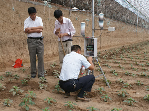 8月22日,內蒙古自治區赤峰市松山區氣象局在全家梁萬畝無公害蔬菜園區新安裝了9要素農田小氣候自動監測儀,該儀器觀測項目包括:0㎝、10㎝、40㎝地溫,1米、1.5米的溫度、濕度,以及二氧化碳、總輻射、光和有效輻射。通過此項工作的開展,氣象服務松山設施農業又增添了新內容。