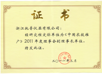 熱烈祝賀托普儀器成為《中國(guó)農(nóng)技推廣》2011年度理事會(huì)副理事長(zhǎng)單位