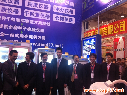 2011年10月22日至23日,浙江托普儀器作為生產種子檢驗檢測儀器的專業廠商,參加了在青島國際會展中心舉行第九屆種子“雙交會”。此次展會規?涨胺比A,也特邀了種子領域杰出的多位代表。農業部種子管理局張延秋局長、全國農技推廣中心夏敬源主任、全國農技推廣中心杭大鵬黨委書記、全國農技推廣中心鄧光聯副主任、種子檢驗首席專家梁志杰研究員、種子檢驗處支巨振處長等行業領導、專家參觀了此次盛會。