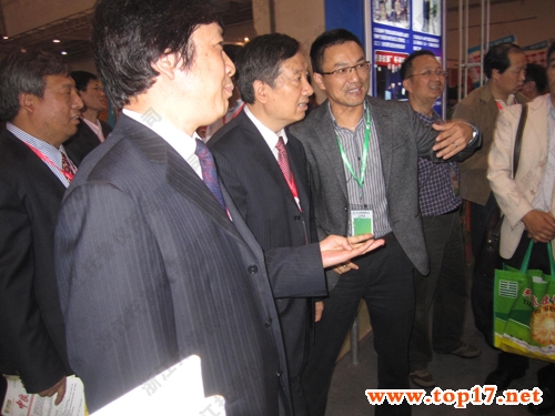 圖為:托普總經理陳渝陽先生陪同張延秋局長等一行領導參觀托普展位