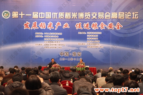 2012年12月10日,第十一屆中國優(yōu)質(zhì)稻米博覽交易會(huì)高層論壇在淮安舉行,全國人大農(nóng)業(yè)與農(nóng)村委員會(huì)副主任委員、中國農(nóng)業(yè)技術(shù)推廣協(xié)會(huì)尹成杰會(huì)長;中國工程院院士、中國農(nóng)科院副院長劉旭;中國水稻研究所稻作中心朱德峰主任;國際水稻研究所Grant Robert Singleton博士;沈陽農(nóng)業(yè)大學(xué)農(nóng)業(yè)部重點(diǎn)實(shí)驗(yàn)室副主任、副教授馬殿榮;黑龍江省農(nóng)科院食品加工研究所盧淑雯所長等六位專家來賓做了精彩的報(bào)告。淮安市委副書記練月琴;淮安市人大常委會(huì)李冰副主任出席論壇。