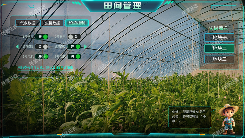 1.取代手機、解放雙手:用戶無需手持設備,通過語音交互、手勢動作、操作按鈕的形式即可將環境設備信息、病蟲害信息等展示在大屏上,徹底解放雙手應對復雜農藝動作。