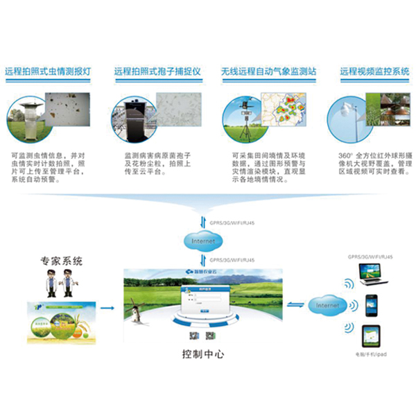 托普農(nóng)作物重大病蟲(chóng)害數(shù)字化監(jiān)測(cè)預(yù)警系統(tǒng)由蟲(chóng)情信息自動(dòng)采集分析系統(tǒng)、孢子信息自動(dòng)捕捉培養(yǎng)系統(tǒng)、遠(yuǎn)程小氣候信息采集系統(tǒng)、病蟲(chóng)害遠(yuǎn)程監(jiān)控設(shè)備、害蟲(chóng)性誘智能測(cè)報(bào)系統(tǒng)等設(shè)備組成,可自動(dòng)完成蟲(chóng)情信息、病菌孢子、農(nóng)林氣象信息的圖像及數(shù)據(jù)采集,并自動(dòng)上傳至云服務(wù)器,用戶(hù)通過(guò)網(wǎng)頁(yè)、手機(jī)即可聯(lián)合作物管理知識(shí)、作物圖庫(kù)、災(zāi)害指標(biāo)等模塊,對(duì)作物實(shí)時(shí)遠(yuǎn)程監(jiān)測(cè)與診斷,提供智能化、自動(dòng)化管理決策,是農(nóng)業(yè)技術(shù)人員管理農(nóng)業(yè)生產(chǎn)的“千里眼”和“聽(tīng)診器”。