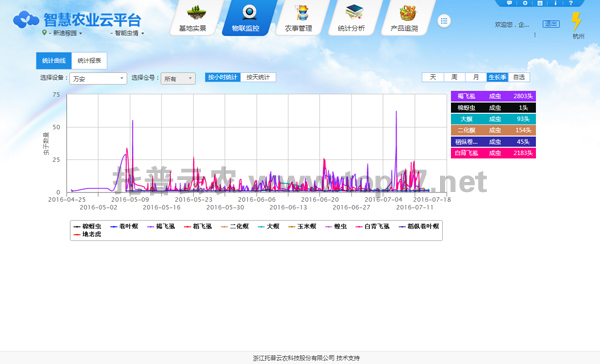 作物重大病蟲(chóng)害數(shù)字化監(jiān)測(cè)預(yù)警系統(tǒng)通過(guò)搭建在田間的智能蟲(chóng)情監(jiān)測(cè)設(shè)備,可以無(wú)公害誘捕殺蟲(chóng),綠色環(huán)保,同時(shí)利用GPRS/3G移動(dòng)無(wú)線(xiàn)網(wǎng)路,定時(shí)采集現(xiàn)場(chǎng)圖像,自動(dòng)上傳到遠(yuǎn)端的物聯(lián)網(wǎng)監(jiān)控服務(wù)平臺(tái),工作人員可隨時(shí)遠(yuǎn)程了解田間蟲(chóng)情情況與變化,制定防治措施。通過(guò)系統(tǒng)設(shè)置或遠(yuǎn)程設(shè)置后自動(dòng)拍照將現(xiàn)場(chǎng)拍攝的圖片無(wú)線(xiàn)發(fā)送至監(jiān)測(cè)平臺(tái),平臺(tái)自動(dòng)記錄每天采集數(shù)據(jù),形成蟲(chóng)害數(shù)據(jù)庫(kù),可以各種圖表、列表形式展現(xiàn)給農(nóng)業(yè)專(zhuān)家進(jìn)行遠(yuǎn)程診斷。