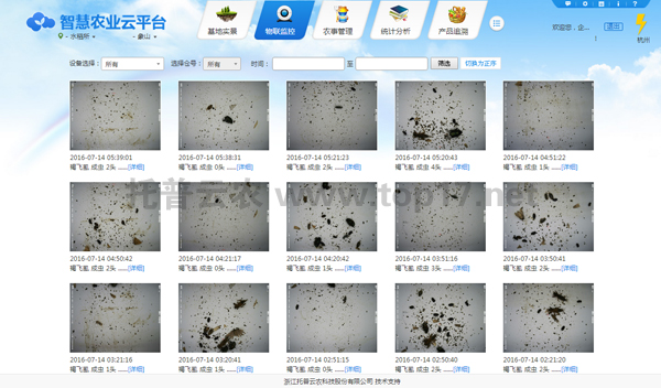 在農林業種植上,一些病蟲害的發生總是無法避免,雖然預防方法多種多樣,但常常因為不科學的做法而收效甚微。托普病蟲害監測預警系統由遠程拍照式蟲情測報燈、遠程拍照式孢子捕捉儀、無線遠程拍照式孢子捕捉儀、無線遠程自動氣象站、遠程視頻監控系統等組成,也叫植保信息化系統、病蟲害監測預警系統。