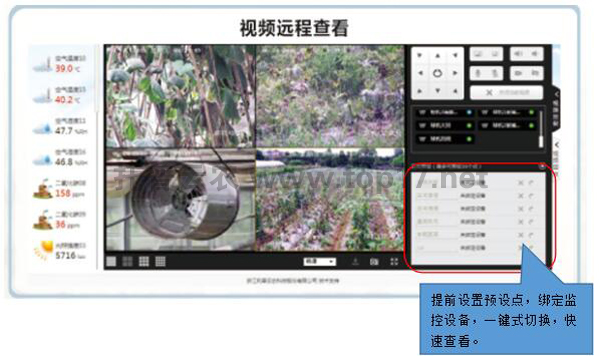 管理區域內放置360°全方位紅外球形攝像機,可清晰直觀的實時查看種植區域作物生長情況、設備遠程控制執行情況等。