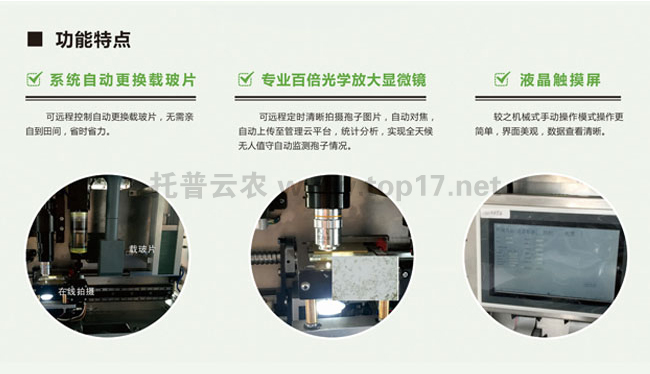 2、自動(dòng)拍照:可以全天自動(dòng)捕捉病菌孢子,對(duì)捕獲的病菌孢子自動(dòng)拍攝;也可根據(jù)監(jiān)測(cè)需要手動(dòng)拍照。